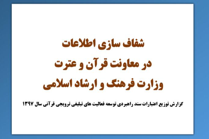 گزارش توزیع اعتبارات قرآنی سال 97 نیز 22 اردیبهشتماه 98 از سوی شورای عالی انقلاب فرهنگی منتشر شد. برای مشاهده اینجا کیلک شود.