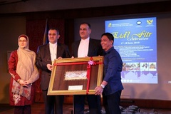 اهدای تابلوی خوشنویسی تندیس تقوی به معاون اجرایی کمیسیون ملی فرهنگ و هنر فیلیپین
