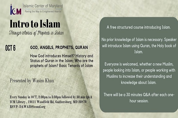به گزارش ایکنا؛ به نقل از پایگاه اطلاعرسانی ایونت برایت، این دوره با عنوان «نگاهی به اسلام: خدا، فرشتگان، انبیا، قرآن» در کتابخانه مرکز اسلامی مریلند برگزار میشود.