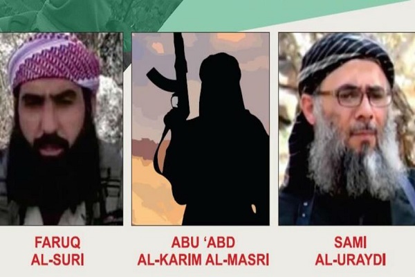 در این بیانیه همچنین آمده است: «ابو عبدالکریم المصری عضو وفادار به ایمن الظواهری، رهبر القاعده میان دو گروه حراسالدین و النصره در سوریه وساطت کرده است. فاروق السوری، مسئول آموزش اعضای القاعده بوده و سامی العریدی اردنی نیز در سازماندهی حمله علیه آمریکا و اسرائیل نقش داشته و عضو گروه حراسالدین است».