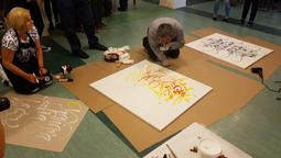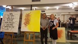 احمد محمدپور، هنرمند ایرانی و «باربارا گالیسنکا» خوشنویس لهستانی در حال اجرای برنامه در روز خوشنویسی لهستان