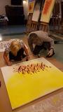 هنرمندان ایران و لهستان در حال خلق اثر در روز خوشنویسی لهستان