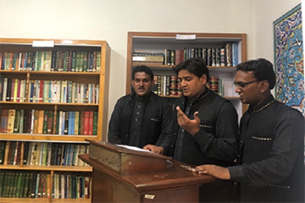 در این برنامه علی مزمل، استاد زبان و ادبیات فارسی دانشکده دولتی تاون شیپ لاهور و شاعر اهل بیت(ع) اشعاری در مدح امام حسین(ع) و کربلا قرائت کرد و هدف برگزاری این محفل را یادی از حادثه کربلا و فداکاری امام حسین(ع) و یارانش خواند.