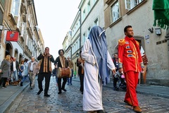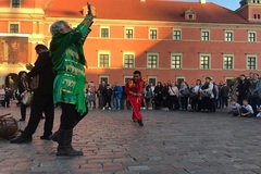 تصاویر برنامه گروه «هومهر» در میدان شهر قدیم ورشو، پایتخت لهستان از «آريو انصاری» و «ايمان ندومی» را در زیر می‌بینید: