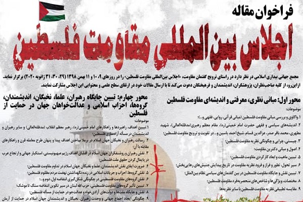 به گزارش ایکنا؛ مجمع بیداری اسلامی در نظر دارد در راستای ترویج گفتمان مقاومت، اجلاس بینالمللی «مقاومت فلسطین» را در روزهای 9 ـ 11 بهمنها برگزار کند.