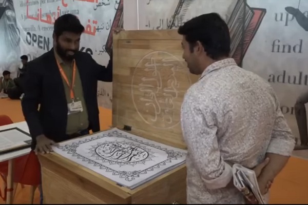 مصراوی»، ام دیلیف، خطاط هندی است که در حال کتابت قرآنی به طول 1000 متر است.