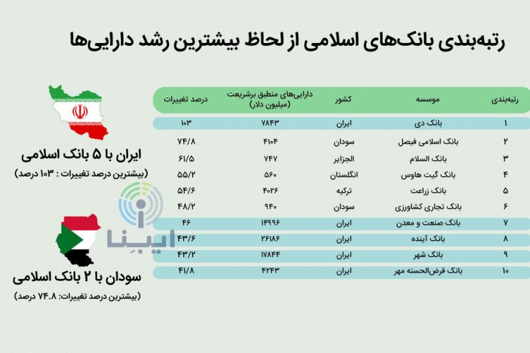 به گزارش ایکنا، به نقل از پورتال بانکداری اسلامی، بر اساس آخرین رتبهبندی نهادهای مالی اسلامی سال ۲۰۱۹ که توسط مجله بنکر منتشرشده است، نقش بانکها و موسسات مالی ایرانی بسیار چشمگیر و از نظر رشد داراییها در بالاترین ردیفها قرار دارند.