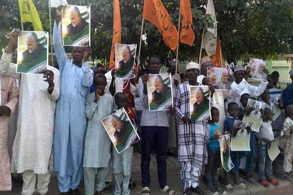 به گزارش ایکنا؛ به نقل از پایگاه خبری العهد، مردم نیجریه برای بزرگداشت دو فرمانده شهید، سردار قاسم سلیمانی و ابومهدی المهندس و همرزمان آنها تظاهرات برگزار کردند. شرکتکنندگان شعار «کلنا سلیمانی ... کلنا ابومهدی» (همه ما سلیمانی هستیم همه ما ابومهدی هستیم) سردادند.