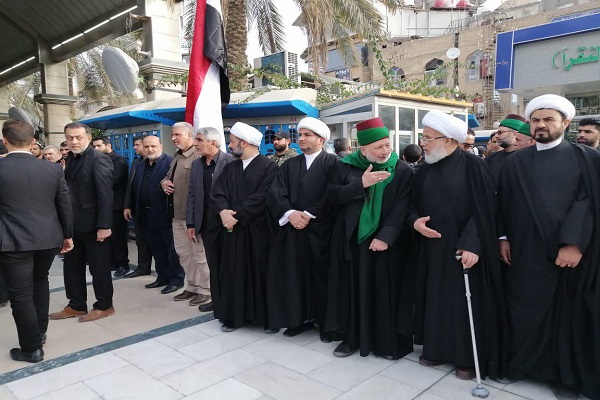 در این مراسم که شیخ عبدالمهدی الکربلایی، معتمد آیتالله العظمی سیستانی در کربلای معلی و متولی شرعی حرم حسینی نیز حضور داشت، گروههای مختلف مردمی و نظامی برای عرض تسلیت حضور یافتند و شهادت این فرماندهان ارشد مقاومت را تسلیت گفتند.