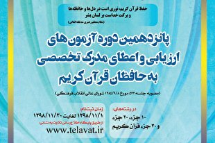 مرحله اول پانزدهمین آزمون تخصصی اعطای مدرک به حفاظ قرآن ۲۲ فروردینماه ۹۹ رأس ساعت ۱۵ به صورت همزمان در سراسر کشور برگزار خواهد شد. ۸۰ درصد از آزمون مرحله اول مربوط به ترجمه آیات و ۲۰ درصد آن نیز حسن حفظ است.