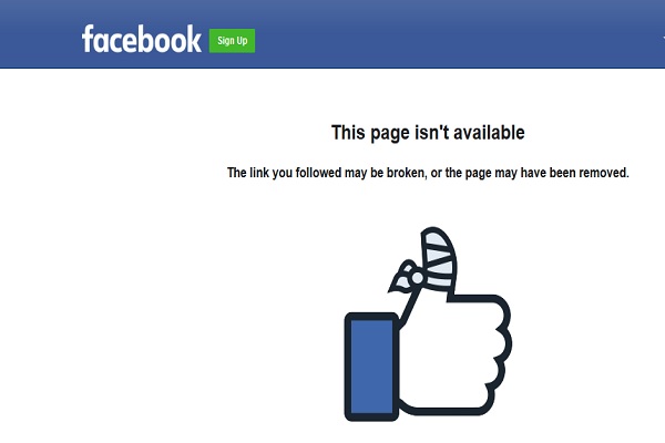 هنگام ورود به صفحه حشدالشعبی در فیسبوک، این عبارت دیده میشود: این صفحه در دسترس نیست. احتمالا پیوندی که دنبال کردید کار نمیکند یا صفحه مورد نظر حذف شده است.