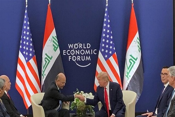 کاخ سفید گفت، برهم صالح هم گفت، واشنگتن و بغداد روابط مستمری دارند و آمریکا شریک عراق در جنگ علیه داعش است. او به ترامپ گفت: این ماموریت باید تکمیل شود و من به تو ایمان دارم و در این ماموریت با تو همکاری میکنم تا عراق شکوفا و با حاکمیت در صلح چه در سطح داخلی و چه در سطح همسایگانش به سر ببرد.