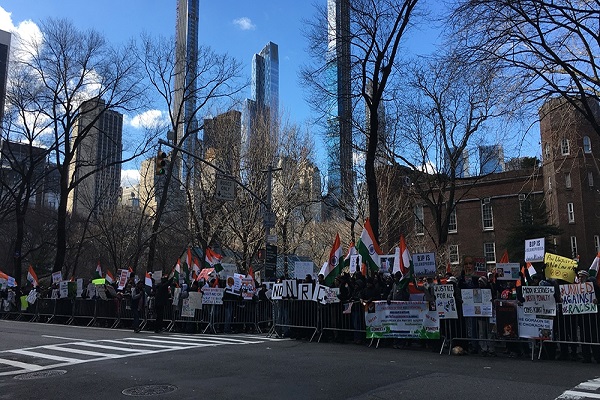 تظاهراتکنندگان در نیویورک در بیرون سفارت هند اجتماع کردند و شعارهایی ضد سیاستهای تبعیضآمیز «نارندرا مودی»، نخستوزیرهند سر دادند.