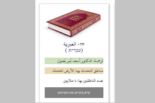 عربی 21»، به تازگی مجمع چاپ و نشر قرآن کریم «ملک فهد» که در مدینه منوره فعالیت میکند، نسخه اینترنتی ترجمه قرآن کریم به زبان عبری را در سایت اینترنتی این مرکز منتشر کرده است که بر اساس اعلام یک پژوهشگر فلسطینی، 300 اشتباه فاحش در این ترجمه وجود دارد.