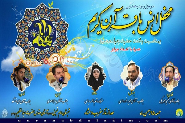 به گزارش ایکنا؛ به همت مرکز آموزش قرآن کریم آستان مقدس حضرت عبدالعظیم حسنی(ع)، دو هزار و نود و هفتمین محفل انس با قرآن کریم همزمان با ولادت حضرت زهرا(س) جمعه، 25 بهمنماه، پس از اقامه نماز مغرب و عشاء برگزار میشود.