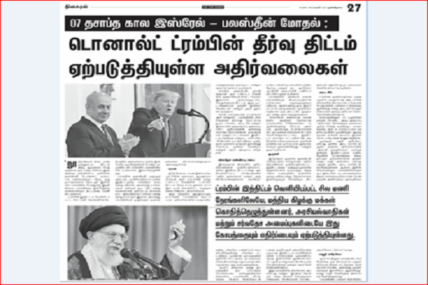 در ادامه این مقاله آمده است: معامله قرن «خیانت قرن» است. ترامپ ادعا کرده که این طرح منافع طرفین را تأمین میکند در حالی که در آن، فقط منافع اسرائیل دیده و تأمین شده است.