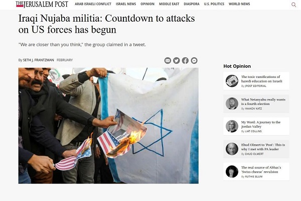 به گزارش ایکنا به نقل از مرکز ارتباطات و امور رسانهای نُجَباء در ایران، روزنامه صهیونیستی «جروزالم پست» در گزارشی به قلم «سِث جی فرانتزمن» تهدید مقاومت اسلامی نُجَباء مبنی بر انتقامگیری قریبالوقوع از اشغالگران آمریکایی را مورد توجه قرار داد.