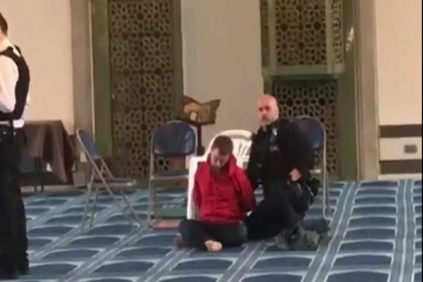 پلیس لندن اعلام کرد: ویدئوی گرفته شده توسط مردم در مسجد، مردی سفیدپوست (عامل حمله) را نشان میدهد که توسط پلیس دستبند زده شده است.