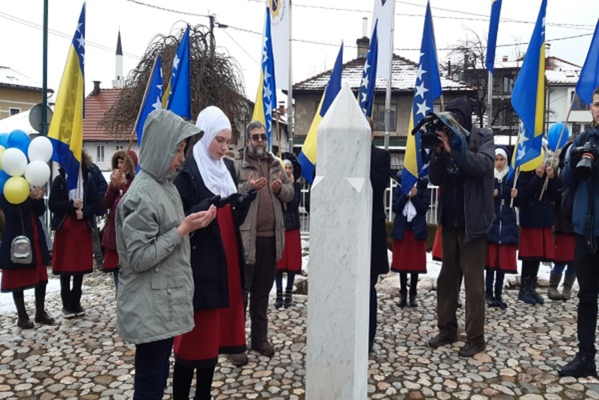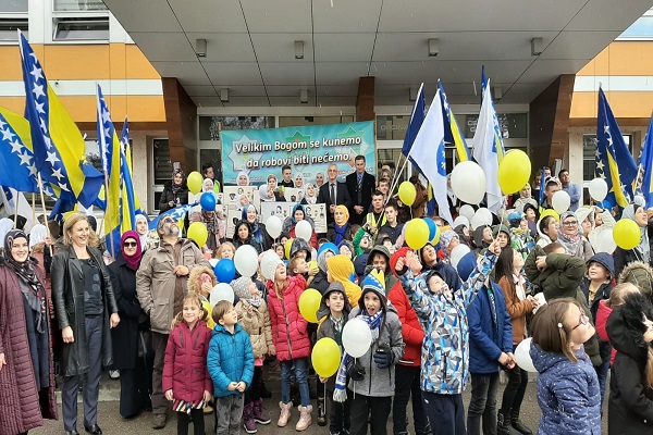 در ادامه ستونی از دانشآموزان با در دست داشتن پرچم بوسنی و هرزگوین به منظور گرامیداشت یاد و خاطره کودکان شهید این کشور در جنگ سارایوو در محل یادبود این شهدا حضور یافتند. آنها سپس به اقامه نماز جمعه پرداختند.