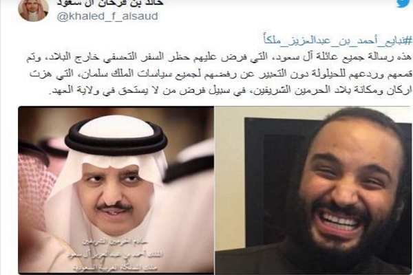 خالد بن فرحان، شاهزاده مخالف با ولیعهد عربستان در توئیتر خود اعلام کرد برای پادشاهی با برادر ملک سلمان، پادشاه این کشور بیعت می‌کند.