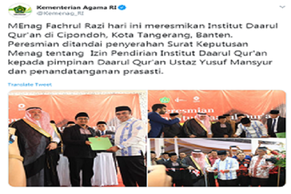 به گزارش ایکنا؛ به نقل از رایزنی فرهنگی ایران در اندونزی، مؤسسه دارالقرآن با حضور فخر الرازی، وزیر دین اندونزی و یوسف منصور، عالم اندونزیایی در تانگرانگ بانتن افتتاح شد.