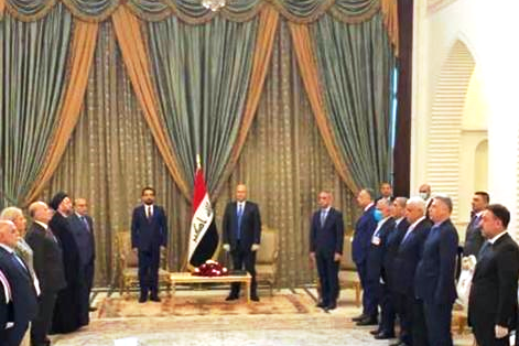 «محمد الحلبوسی» رئیس پارلمان و «فائق زیدان» رئیس شورای عالی قضایی، عالیترین مرجع قضایی عراق در کاخ ریاست جمهوری برای تکلیف الکاظمی به پست نخستوزیری حضور یافتند.