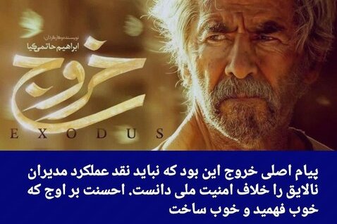پیام اصلی فیلم "خروج" این بود که نباید نقد عملکرد مدیران نالایق را خلاف امنیت ملی دانست. احسنت بر اوج که خوب فهمید و خوب ساخت.