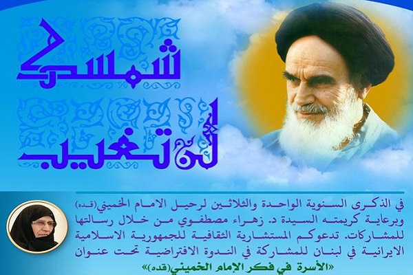 به گزارش ایکنا از لبنان، رایزنی فرهنگی ایران در لبنان به مناسبت سیویکمین سالگرد ارتحال امام خمینی، وبیناری را ویژه بانوان با عنوان «خانواده در اندیشه امام خمینی» با پیام زهرا مصطفوی، دختر بنیانگذار کبیر انقلاب اسلامی ایران، برگزار میکند.