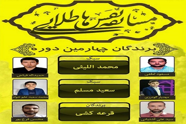 مسعود لطفی، حمیدالله فیاض در سبک مرحوم محمد اللیثی؛ مهدیار گودرزی و محمدسعید علمخواه در سبک مرحوم سعید مسلم؛ سیدعلی آشتیانی و محسن فرخپور برندگان دوره چهارم مسابقه نفسهای طلایی هستند.