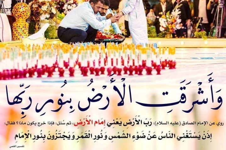در تفسیر قمی، در ذیل آیه «وَ أَشْرَقَتِ الْأَرْضُ بِنُورِ رَبِّها؛ [زمر/۶۹]و زمین به نور پروردگارش روشن میشود» از امام صادق (علیهالسلام) نقل شده منظور از «رب الارض» امام روی زمین است. [۱]در رابطه با این روایت باید گفت: