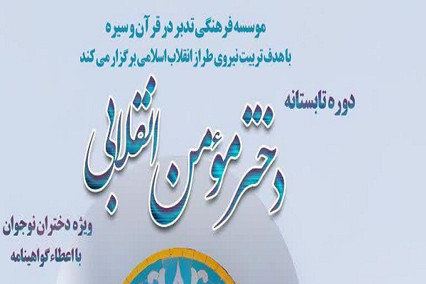 به گزارش ایکنا؛ دوره آموزش تابستانه «دختر مؤمن انقلابی» ویژه دختران نوجوان 10 تا 19 سال با هدف تربیت نیروی طراز انقلاب اسلامی از سوی مؤسسه تدبر در قرآن و سیره مشهد برگزار میشود.