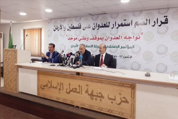 در همین راستا «عبدالحمید الذنیبات»، ناظرکل اخوان المسلمین در اردن درباره طرح الحاق کرانه باختری که قرار است طی دو روز آینده اجرا شود، بیانیهای رسمی منتشر کرد.
