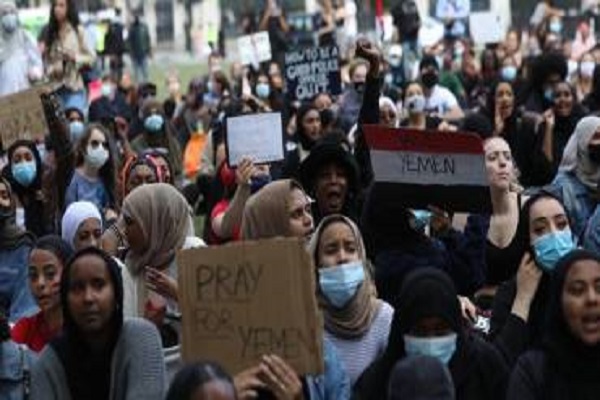آنها با در دست داشتن پرچمهای یمن، پلاکاردهایی را حاوی شعارهایی از جمله «عدالت برای یمن»، «یمن را نجات دهید»، «روابط را با امارات قطع کنید» و «جلوی عربستان را بگیرید» حمل میکردند.