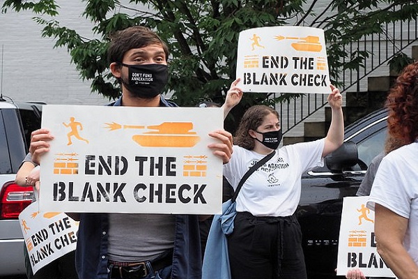 معترض دیگری گفت: «امروز صبح به آنجا میرویم تا جرد کوشنر را از خواب بیدار کنیم. اعتراض ما به طرح دولت برای الحاق کرانه باختری است».