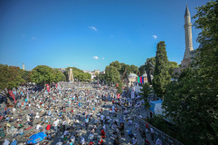 نخستین نماز جمعه در مسجد ایاصوفیه در شهر استانبول، پس از ۸۶ سال با حضور هزاران نفر از شهروندان ترکیه جمعه، سوم مردادماه برگزار شد.