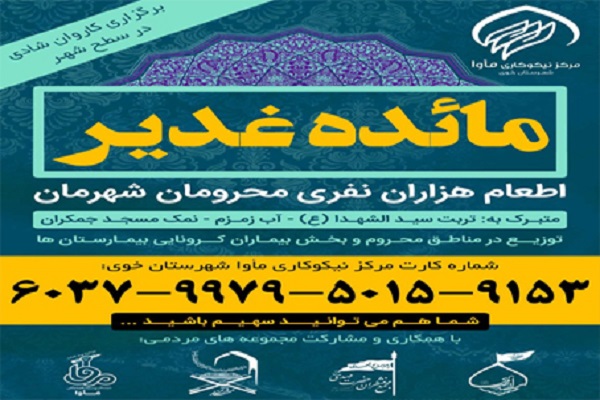 طرح «مائده غدیر» با مشارکت مهد قرآن شهرستان خوی با مراکز دینی مردم‌نهاد این شهر اجرا می‌شود.