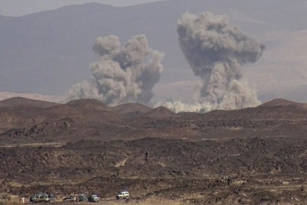 هواپیماهای ائتلاف متجاوز سعودی در دو نوبت منطقه ناطع در استان البیضاء و چهار نوبت منطقه الخسف در بخش الحزم استان الجوف را بمباران کردند.