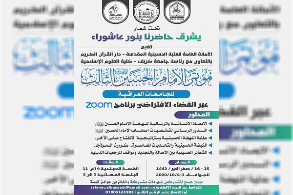«ضرغام الموسوی»، رئیس دانشکده علوم اسلامی کربلا، گفت: این وبینار در محورها و شرایط خاصی، که کمیتههای مشترک علمی کنفرانس تعیین کردهاند، برگزار میشود که شامل نخست «ابعاد انسانی و رسالت نهضت امام حسین(ع)»، دوم «رسالت شخصیتهای یاران امام حسین(ع)»، سوم «جهانشمولی نهضت حسینی و راهبرد دوستی با دیگران»، چهارم «نهضت حسینی و چالشهای دنیای امروز از جمله کرونا» و پنجم «شعائر حسینی در گذر سنت و نوگرایی و مواضع مراجع دینی» است.