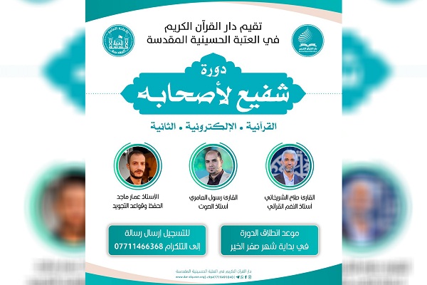 dar-alquran.org»، در این دوره آموزشی مجازی، مباحثی در زمینه قواعد تجوید و تلاوت، قرائت صحیح آیات قرآن، صوت و لحن و حفظ جزء 30 قرآن از سوی اساتید متخصص برای دانشجویان دانشگاهها و مراکز آموزش عالی عراق ارائه میشود.
