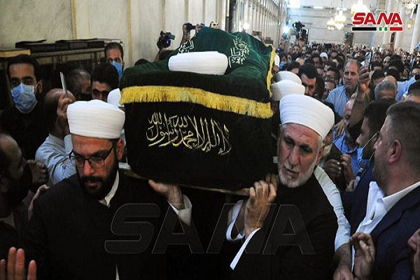 مراسم تشییع پیکر مفتی دمشق امروز با مشارکت محمد عبدالستارالسید وزیر اوقاف سوریه به نمایندگی از بشار اسد رئیسجمهور این کشور در مسجد اموی برگزار شد.
