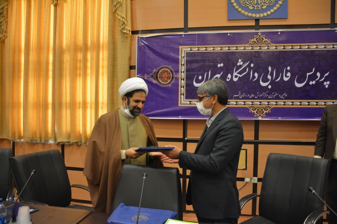 محمدرضایی، رییس پردیس فارابی دانشگاه تهران ضمن خوشامدگویی به اعضای هیأت رئیسه دانشگاه اهل بیت (ع) به بیان گزارشی از تاریخچه و فعالیتهای این دانشگاه پرداخت و با بیان اینکه پردیس فارابی قدیمیترین مرکز آموزش عالی در قم است که تأسیس آن به پنجاه سال قبل بازمیگردد. این پردیس شامل چهار دانشکده در حوزههای علوم انسانی، علوم پایه، فنی مهندسی و الهیات است که سیاست راهبردی خود را گسترش همکاری با دانشگاههای داخل و خارج ایران میداند.