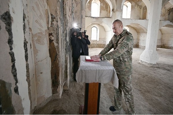 رئیس‌جمهور آذربایجان قرآن شخصی خود را به مسجد آغ‌دام اهدا کرد + عکس
