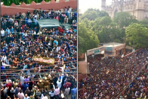 مراسم خاکسپاری با حضور انبوه جمعیت در لکهنو برگزار و در شبکه هند به صورت زنده پخش شد. این مراسم در حالی برگزار شد که ممنوعیت‌های گسترده برای پیشگیری از انتشار ویروس کرونا از سوی دولت اعمال شده بود.