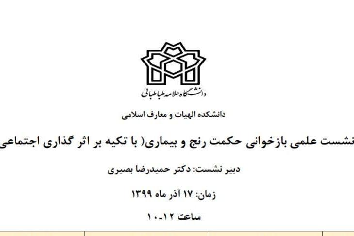 به گزارش ایکنا، نشست علمی «بازخوانی حکمت رنج و بیماری (با تکیه بر اثرگذاری اجتماعی)» به همت دانشکده الهیات و معارف اسلامی دانشگاه علامه طباطبایی برگزار خواهد شد.