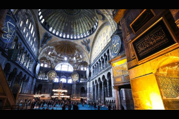 آناتولی، تابلوی اهدایی رجب طیب اردوغان به مسجد ایاصوفیه در ابعاد ۲۳۴ در ۳۵۰ سانتیمتر است که آیات ۱۵۹ و ۱۶۰ سوره مبارکه آل عمران با خط عربی بر روی آن نقش بسته است.