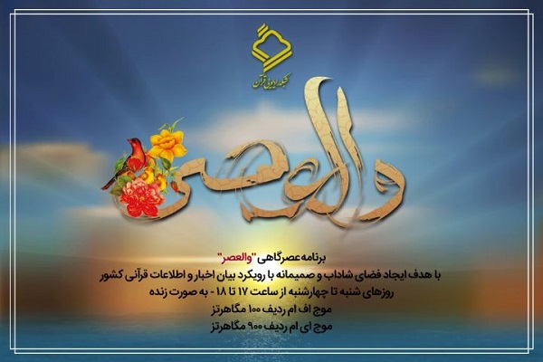 به گزارش ایکنا، «والعصر» عنوان برنامه‌ای از گروه اطلاع‌رسانی شبکه رادیویی قرآن است که به انعکاس به‌روز اخبار، رویدادها، تحلیل چالش‌ها و فضای قرآنی کشور می‌پردازد.