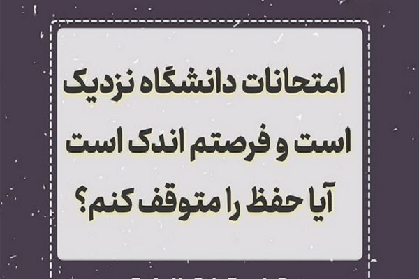 به گزارش ایکنا، سعیده الوان، حافظ کل و مدرس دانشگاه، در جدیدترین پست خود در صفحه آکادمی حفظ قرآن به پرسش قریب به اتفاق حافظان قرآنی که مشغول تحصیل در دانشگاهها، حوزهها و مدارس هستند مبنی بر اینکه آیا همزمان با امتحانات دانشگاه به دلیل فرصت اندک، برنامه حفظ را متوقف کنیم؟ پاسخ داده است.