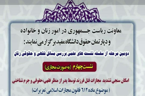 به گزارش ایکنا، نشست علمی «امکان سنجی تشدید مجازات قتل فرزند توسط پدر از منظر فقهی، حقوقی و جرمشناختی»، چهارشنبه، سوم دیماه از ساعت 14:30 تا 16:30 به صورت مجازی برگزار و از طریق نشانی اینترنتی ttps://www.skyroom.online/ch/mofidclass/zanan پخش میشود.
