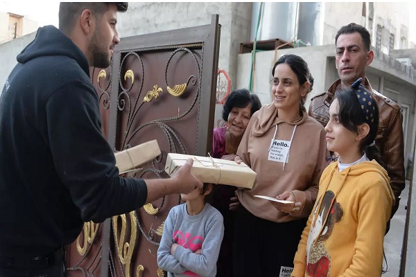 اعضای کمپین «تحاور» و سایر داوطلبان حدود 1400 کارت را در سراسر این شهر که پس از حمله داعش در سال 2014 ویران شده بود، به مسیحیان تحویل دادند.