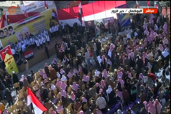 مراسم گرامیداشت نخستین سالگرد شهادت سپهبد حاج قاسم سلیمانی و شهید ابومهدی المهندس با حضور پرشور مردم منطقه البوکمال در مرز عراق و سوریه برگزار شد.